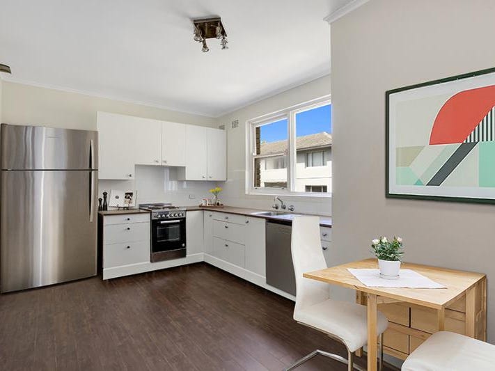 The apartment features beautiful timber flooring throughout and a generous open-plan living and dining area that flows seamlessly onto a private balcony with pleasant leafy district views. The modern, oversized kitchen offers plenty of space for cooking and storage, while the well-proportioned bedrooms provide comfortable living.
